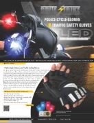 TheBrite-Strike®LED ActiveIluminationRe ectiveTMTrafficSafetyGloves andCycleGloves,offerawholenewlevelofprotectionforofficers,traffic controlers,andotheremergencyworkersthathavetobeinoraround trafficatnight.Themicro-thinLEDstripoffersahugestepforward withAPALS-AIR®(ActiveIluminationRe ectiveTM)soadistracted driverseesthe lighted blinking red stop sign orgreen backhandofthetrafficglovebeforeadriver’sheadlightshit