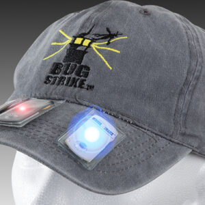 Brite-Strike Technologies Inc. has developed the Bug-Strike® Light based insect repelling system. It uses IR (infrared) UV and Blue light to repel insects. Bug-Strike® set of three attaches to any hat using the 3M® peel and stick adhesive or by the hook and loop kit (included).